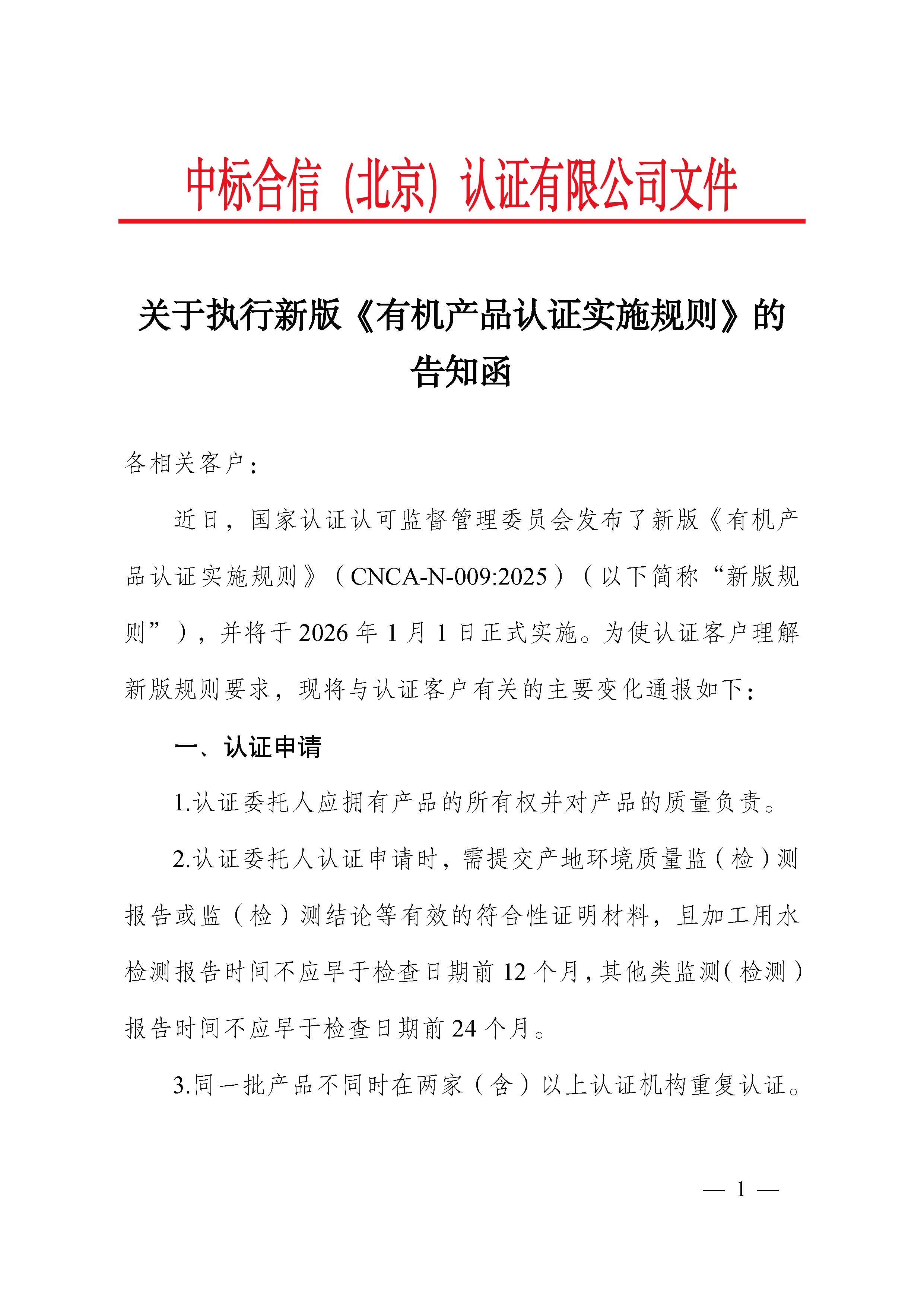 国家认监委关于发布新版有机产品认证实施规则的公告